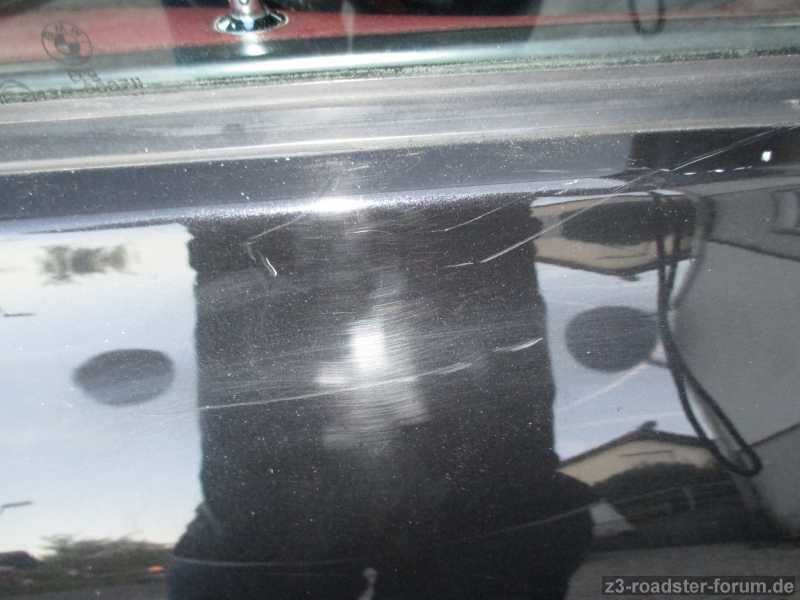 Gut, mit den Schrammen an der Tür gilt die Beweislast, aber die Montage des neuen Verdeckstoff ist einfach nur schlecht. Zumindest das was die Schraube und die etwas zu große Lücke im Bereich der B-Säule angeht.