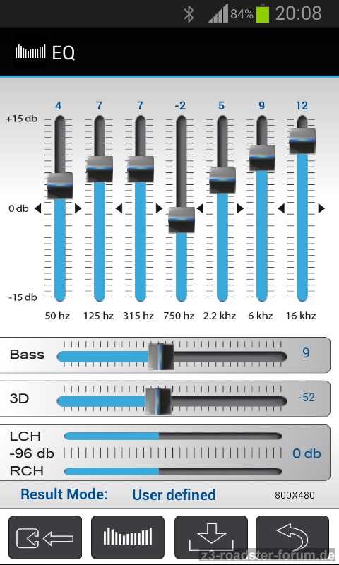 Im letzten angehängten Foto seht Ihr die DSP-Einstellungen der App, die besonders gut mit den Original Nokian BMW Lautsprechern (20/40 Watt) harmonieren (diese hier: VFL von Stereo auf Hifi im Fußraum für Originalliebhaber). Ihr seht, die 50 Hz habe ich wenig betont, dafür 125 Hz / 315 Hz mehr betont, da die Lautsprecher damit besser zurechtkommen und bei höherer Lautstärke nicht verzerren.