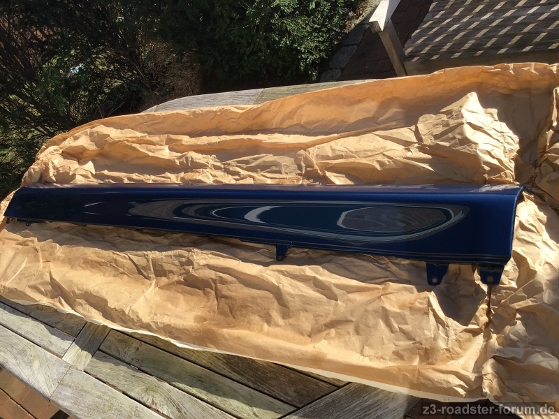Ich biete hier das Einstiegsblech links (Fahrerseite) für einen 2002‘er Z3 in Topasblau Met. (364) an. Das ist die Schwellerverkleidung.