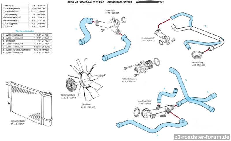 Der Plan ist alle Kühlwasserschläuche, Thermostat, WaPu, Visco-Kupplung und der Kühler zu tauschen.
