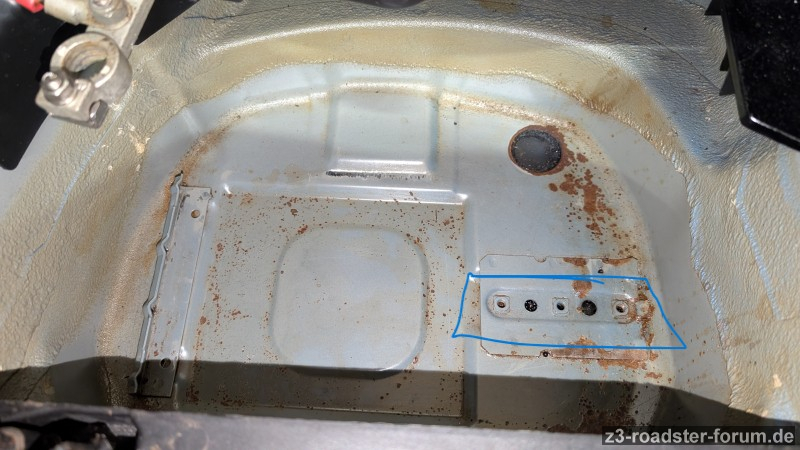 Das Hauptproblem wird unter dem Blech sein wo die Halterung der Batterie rein geachraubt wird. Hier kommt er nicht ran. Da würde ich mit Owatrol mehrfach fluten. Da müsste auch ein Stopfen sein...