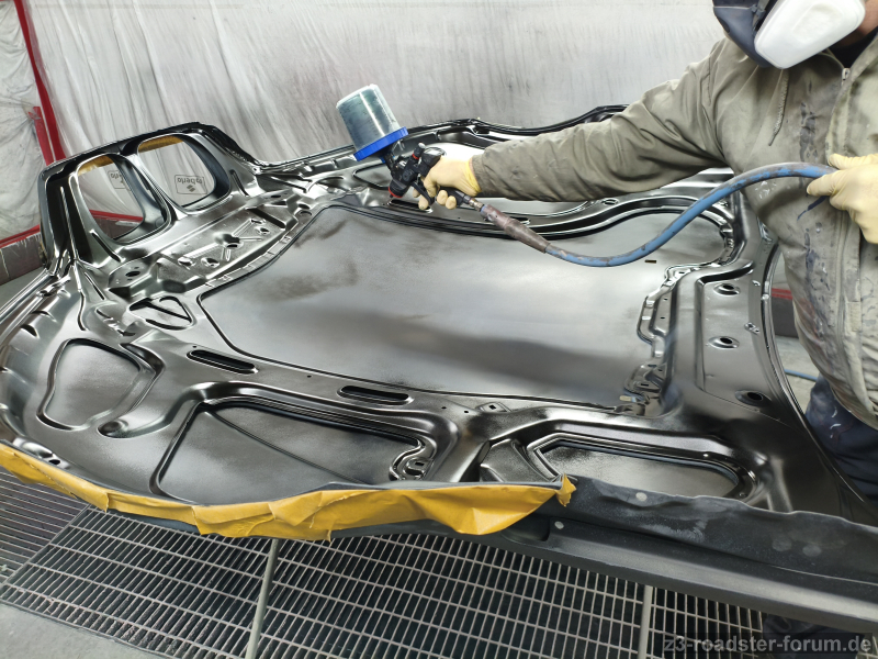 Die schwarze Untergrundfarbe wurde lackiert und es ging mit der eigentlichen Farbe weiter.