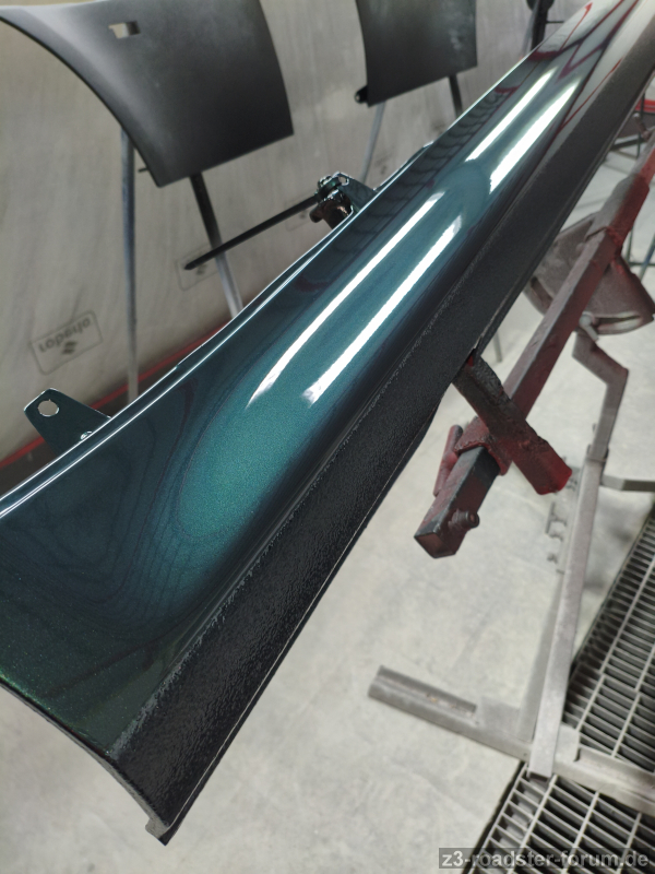 Die schwarze Untergrundfarbe wurde lackiert und es ging mit der eigentlichen Farbe weiter.