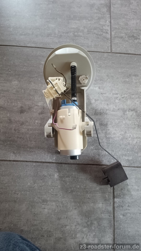 Anschließend wurde der Kraftstoff abgepumpt und die Benzinpumpe über die Wartungsklappe ausgebaut. Nach etwa 30 Minuten war die Fördereinheit draußen und wurde direkt an 12 V angeschlossen. Dabei hat sie keinerlei Geräusch von sich gegeben.