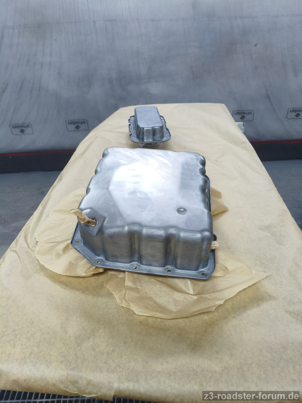 Das Automatik Getriebe habe ich ja überholen lassen. Meine Jungs wollten das Getriebeöl wechseln um die Späne vom einschleifen zu entfernen. Diese Gelegenheit habe ich genutzt, um die Ölwannen zu entlacken und neu zu lackieren.