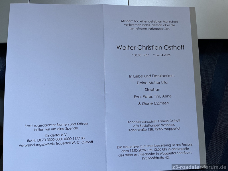 Kondolenzanschrift: