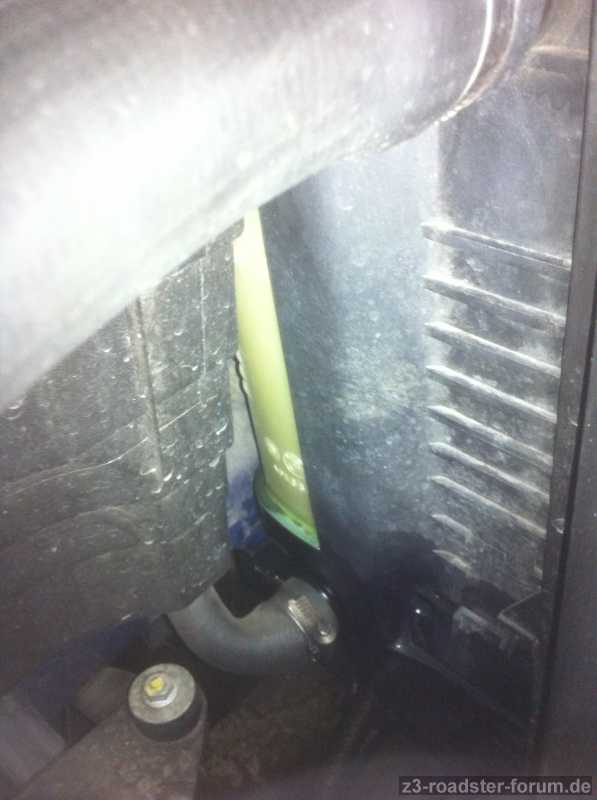 mein Z3 verliert Kühlwasser, bemerkt durch erhöhte Temperatur (zum glück noch nicht im roten Bereich) und fehlende Heizleistung im Innenraum. Nach einem Blick in den Ausgleichsbehälter stelle ich fest, dass der Wasserstand bis ans untere Ende gesunken ist, ungefähr da wo der "gelbe durchsichtige Kunststoff" aufhört. In der Wanne vor/unter dem Kühler ist auch Wasser zu sehen, ebenso außen am Ausgleichsbehälter.
